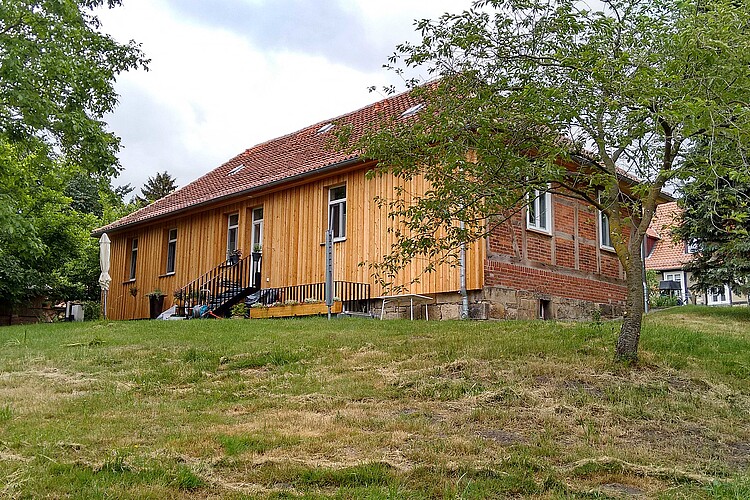 Was heute aussieht wie ein originales 180 Jahre altes Denkmal ist in weiten Teilen mit viel Liebe zum Detail neu aufgebaut worden: Fußschwellen wurden ausgetauscht, Fundamente ertüchtigt, Sockel und Gefache neu aufgemauert, Innendämmung und Lehmverputz angebracht. Die Süd- und Westfassade erhielten eine Außendämmung mit Lärchenholzverschalung. Der Fußboden samt Dämmung in Form einer gebundenen Schüttung wurde mit Parkettoberflächen neu aufgebaut. Fenster und Türen sind dichtschließend und wärmegedämmt erneuert worden. Das Haus verfügt über eine moderne Heizungsanlage auf Nahwärmebasis, sowie neu aufgebaute Elektroinstallationen und zwei moderne Bäder. Der Dachstuhl wurde vollständig durchsaniert und in weiten Teilen neu konstruiert beziehungsweise ertüchtigt. Um den Charakter des historischen Gebäudes zu bewahren, wurde das Dach mit den gereinigten alten Dachziegeln wieder gedeckt.