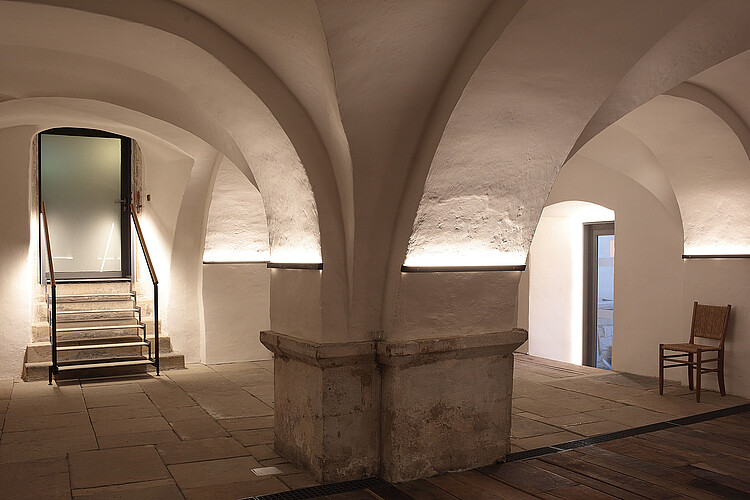 Der mitunter fälschlicherweise als Krypta bezeichnete Raum, diente seit dem 18. Jahrhundert als Kohlenkeller, später als allgemeiner Lagerraum und in den vergangenen zehn Jahren als Durchgangs- und Garderobenraum für Veranstaltungen. Der Raum ist vom Klosterinnenhof erreichbar, allerdings etwa 80 Zentimeter unter der Geländeoberfläche gelegen. Weil der Raum zeitweise von einem offenen Kanal durchflossen worden ist, herrschte eine hohe Luft- und Bauteilfeuchtigkeit.