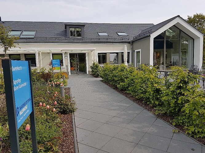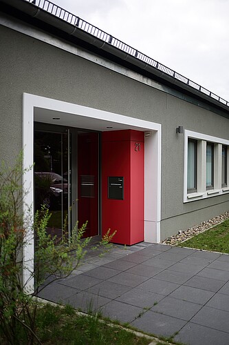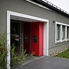 Das Gebäude stammt, wie das benachbarte Gemeindehaus, aus dem Jahr 1965. Auch hier war – wegen einschlägiger Hygiene- und Bauvorschriften – eine tiefgreifende strukturelle und technische Umgestaltung notwendig. Die Architektursprache orientiert sich eng am Bestand, der Essraum mit dreigeteilter Festverglasung wurde angebaut. Das Farbkonzept führt die mit dem Gemeindehaus begonnene Gestaltung fort.