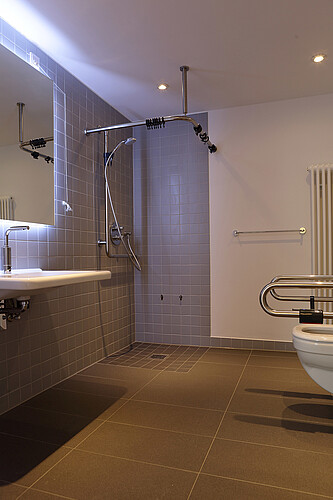 Nach den Bedürfnissen der Tagesgäste gestaltet: ein barrierefreies Pflegebad. Foto: Micha Neugebauer