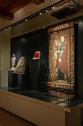 Die textilen Kunstschätze aus Kloster Wienhausen gehören weltweit zu den bedeutendsten Beständen. Großformatige Bildteppiche, wertvolle Leinenstickereien und Figurenornate werden seit 1993 in Ganzglasvitrinen präsentiert.