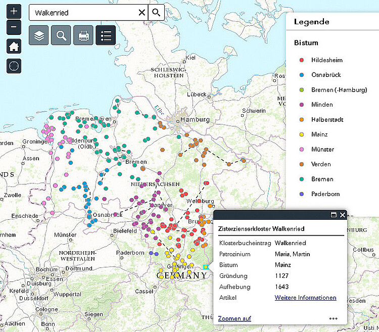 Eine digitale Karte gibt Überblick über Klöster, die bis zur Säkularisation 1810 in Niedersachsen und Bremen bestanden haben. Die Daten aus dem 2013 herausgegebenen Niedersächsischen Klosterbuch sind damit zu großen Teilen online abrufbar.