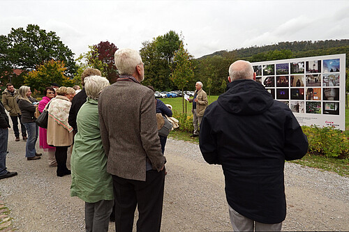 Uwe Stelter (Mitte) erläuterte zur Vorstellung der neuen Foto-Installation sein Konzept des partizipativen Workshops. Foto: Ekki Kähne