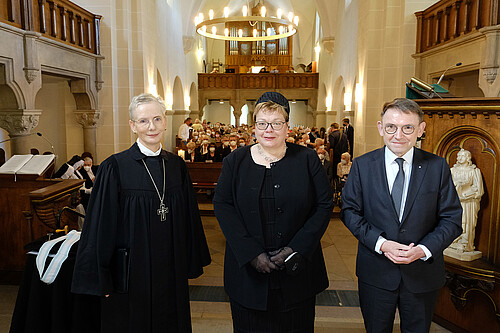 Regionalbischöfin Dr. Petra Bahr, Äbtissin Ulrike Kempe und Kammerdirektor Andreas Hesse vor dem Festgottesdienst zur feierlichen Einführung der neuen Leiterin des Klosters Marienwerder. Foto: Harald Koch