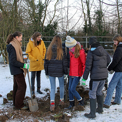 Praktische Lektion im Gartenbau: Schülerinnen und Schüler der 8. Klassen der Freien Waldorfschule Hannover-Bothfeld haben am 20. Januar 2023 geholfen, Obstbäume zu pflanzen.