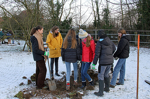 Praktische Lektion im Gartenbau: Schülerinnen und Schüler der 8. Klassen der Freien Waldorfschule Hannover-Bothfeld haben am 20. Januar 2023 geholfen, Obstbäume zu pflanzen.
