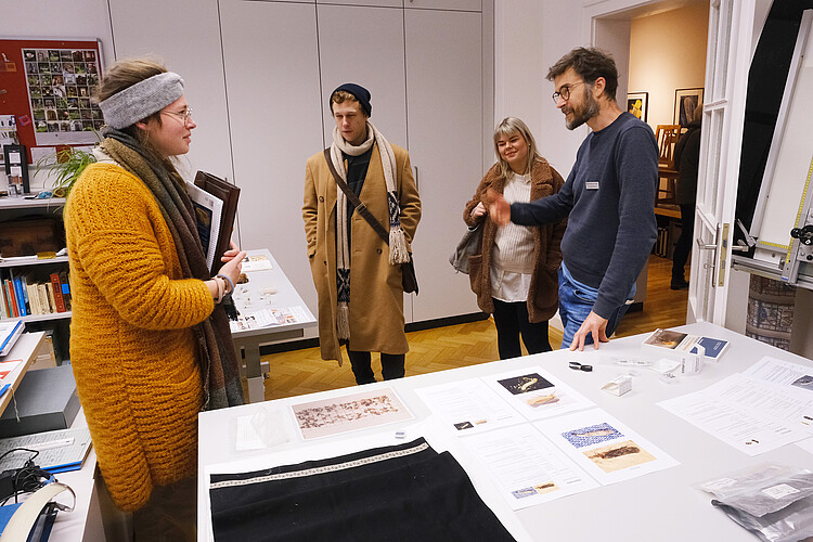 Restaurator David Mühlenhaupt (re.) erklärte, welche Insekten Schäden in wertvollen Möbeln und Kunstgegenständen hinterlassen können. Foto: Harald Koch