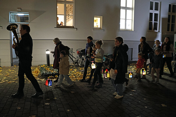 Laternen im Einsatz beim Umzug – angeführt von Dr. Tim Wameling mit Melodien auf dem Tenorhorn. Foto: Lina Hatscher, Klosterkammer