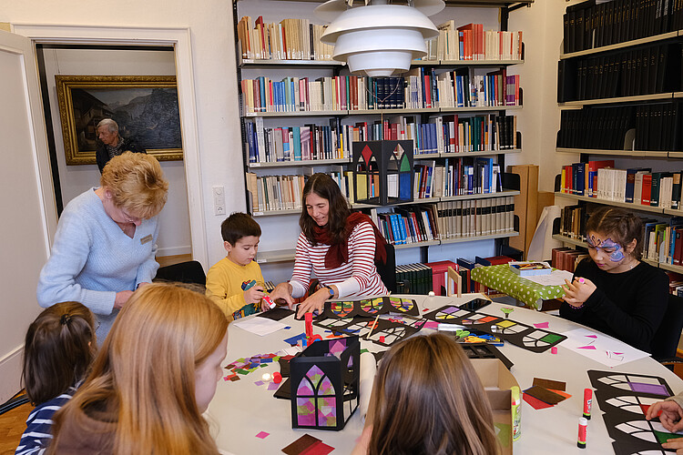 Kreativ ging es auch in der Bibliothek der Klosterkammer zu: Dort leiteten Dr. Henrike Wahl, Äbtissin des Klosters Barsinghausen, und Beate Bödeker, als Sekretärin im Vorzimmer der Klosterkammer-Präsidentin sowie im Kloster Barsinghausen tätig, gemeinsam das Laternen-Basteln an. Mit buntem Transparentpapier geschmückt, leuchteten die Laternen mit LED-Lichtern danach beim Laternen-Umzug. Dr. Tim Wameling leitete den Zug mit seinem Tenorhorn an und sorgte für die passenden Melodien, während Eltern und Kinder mitsingen konnten.