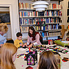 Bunt ging es in der Bibliothek der Klosterkammer zu: Dr. Henrike Wahl, Äbtissin des Klosters Barsinghausen (2.v.re.), und Beate Bödeker (2.v.li.) leiteten gemeinsam das Laternen-Basteln an. Foto: Harald Koch